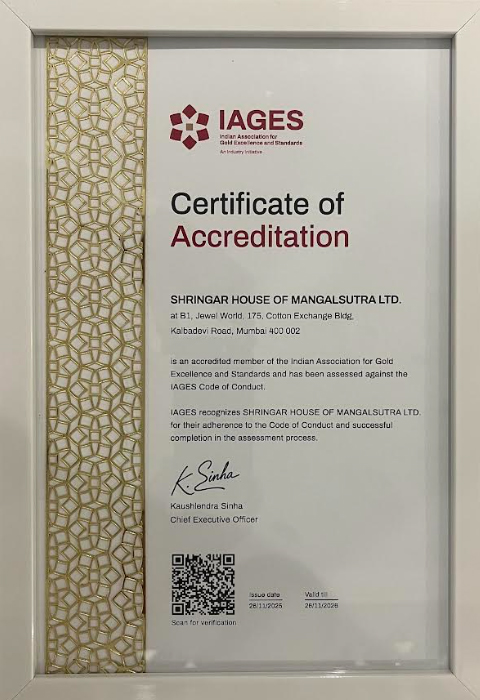 Shringar House of Mangalsutra Limited (SHOML), one of India’s most trusted names in mangalsutra craftsmanship, has received the IAGES accreditation from the Indian Association for Gold Excellence and Standards on November 27, 2025. The brand has spent decades to bring quality and heritage together through a modern approach that focuses on process. more