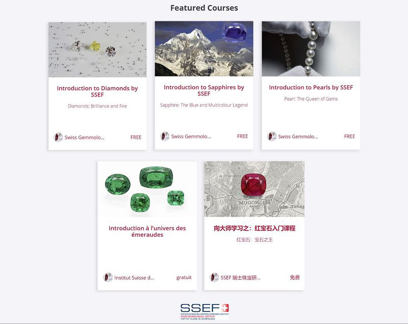 The courses are available in English, French and simplified Chinese. The gems currently covered are diamonds, emeralds, pearls, rubies and sapphires. SSEF plans on adding more gems and languages to the selection of courses in the future.