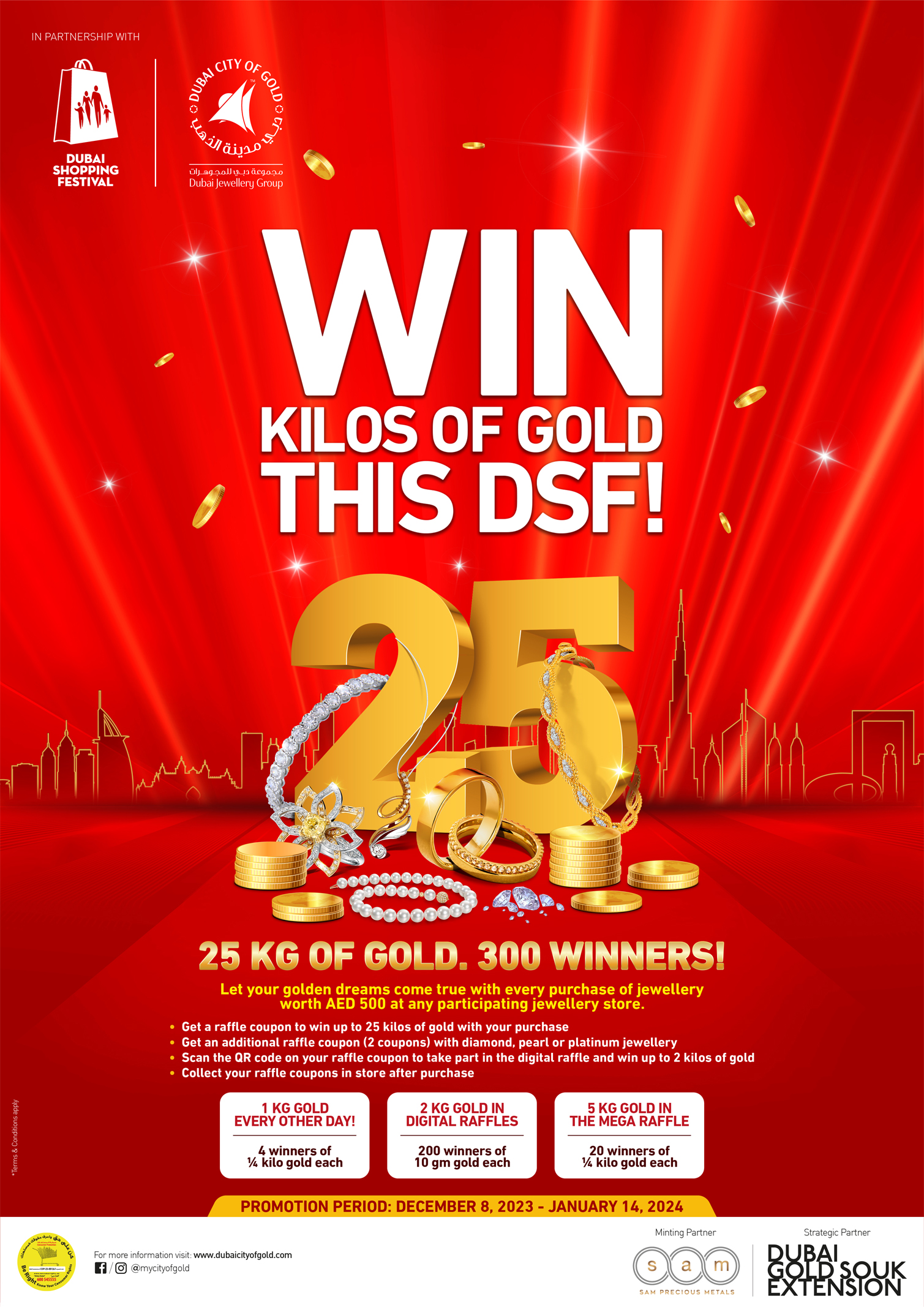 Shoppers indulging in a purchase of AED 500 or more from any of the participating jewellery outlets will stand the chance to partake in DJG's exclusive raffle. This year, a staggering total of 25 kilograms of gold will gleam in the hands of 300 fortunate winners throughout the campaign. Additionally, customers will receive two raffle coupons upon purchase of exquisite diamond, pearl, or platinum jewellery, enhancing their odds to claim these shimmering rewards.