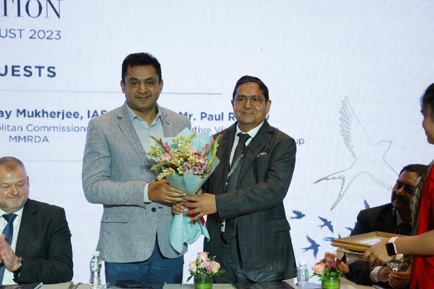 Dr. Sanjay Mukherjee, IAS, Metropolitan Commissioner, MMRDA; being felicitated by Mr. Kirit Bhansali, Vice Chairman, GJEPC; during the inauguration of IIJS Premiere organised by the Gem & Jewellery Export Promotion Council (GJEPC) at JIO World Convention Centre
