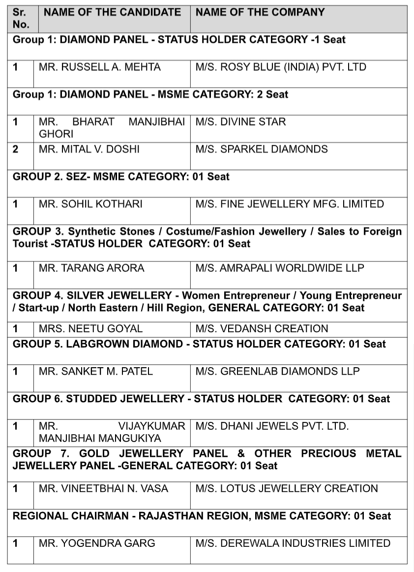 The Gem & Jewellery Export Promotion Council (GJEPC), the apex body of the gem and jewellery trade in India, has announced the results of its recent Committee of Administration (CoA) elections for 2025 for the vacant positions. Declared on 19th September 2025, the results confirmed the election of the following esteemed industry leaders as CoA members: