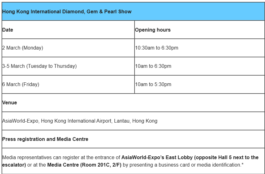 Kent Wong, Chairman of the Hong Kong International Jewellery Show and the Hong Kong International Diamond, Gem & Pearl Show Fair Organising Committee, said: “Hong Kong is an international trade and sourcing centre and our twin jewellery shows play a pivotal role. Continuing the successful ‘Two Shows, Two Venues’ format, the fairs attract global jewellery professionals for sourcing and networking, helping the industry capture the latest global market trends.”