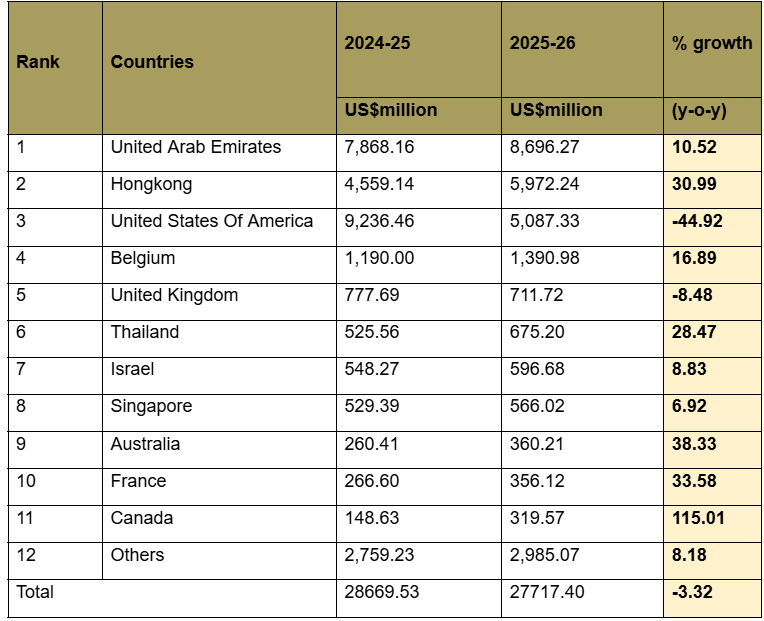 Mr. Kirit Bhansali, Chairman, GJEPC, said, “FY 2025–26 marks a phase of structural reset for the Indian gem and jewellery industry, where growth is becoming more broad-based and less dependent on a single market. Exporters have actively diversified into new geographies, strengthened value-added segments, and adapted swiftly to evolving global trade dynamics.” “Even as the U.S. market saw a decline due to tariff-related uncertainties, markets such as the UAE, Hong Kong, Australia, and Canada have demonstrated strong growth.