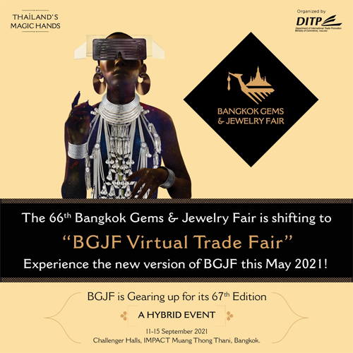 The Department of International Trade Promotion (DITP) will change the 66th Bangkok Gems & Jewelry Fair scheduled for February 2021 from a physical fair to become the BGJF Virtual Trade Fair in May 2021 in order to ensure the continuity of the trade show and provide trading opportunities for the gems and jewelry industry during the New Normal.